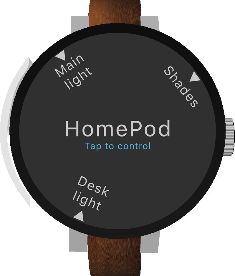 Point the watch to what you want to control (apple TV, light, shades...) and push the rotating crown to control it.